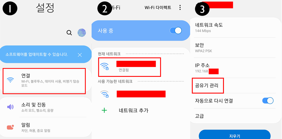 ③ 다음 목록에서 공유기 관리를 눌러주십시오.