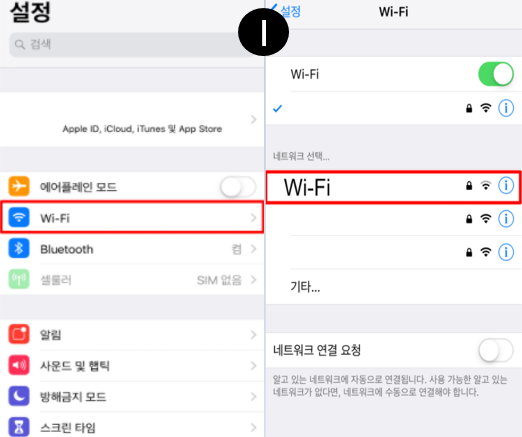 ② 공유 받을 아이폰에서 해당 와이파이를 선택해 주십시오.