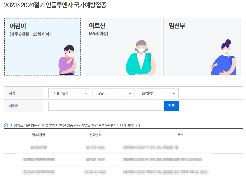 현재 인플루엔자 국가예방접종은 어린이(생후 6개월 ~13세 이하), 어르신(65세 이상), 임산부를 대상으로 지원하고 있습니다.